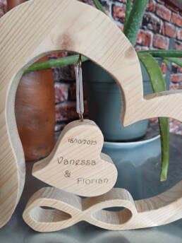Décorations à offrir pour un mariage. Ce cœur représente l’amour infini, souvenir d’une journée importante.